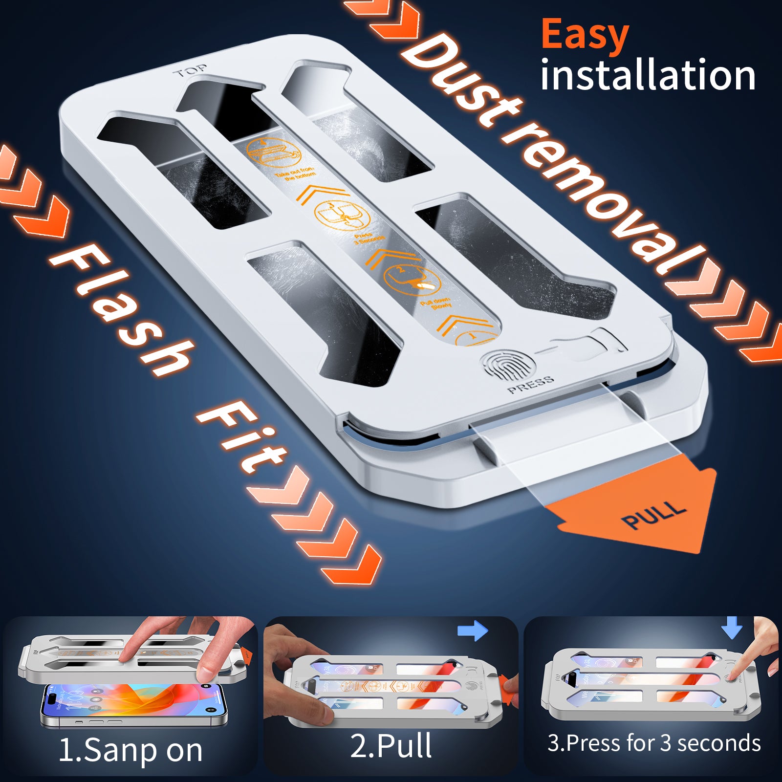 - [Flash Fit Installation & Lifetime Warranty] No need to worry about dust in the air. Simply wipe the fingerprints off your screen, pick up the installation tool, pull the installation strip, and wait for automatic adhesion – you’ll have a perfectly protected screen. Refer to the installation video or manual for guidance. Tip: Use the included scraper to solve any bubble issues. If you have any questions, feel free to contact us. If you're not satisfied with our product, you can get a free replacement or a full refund.